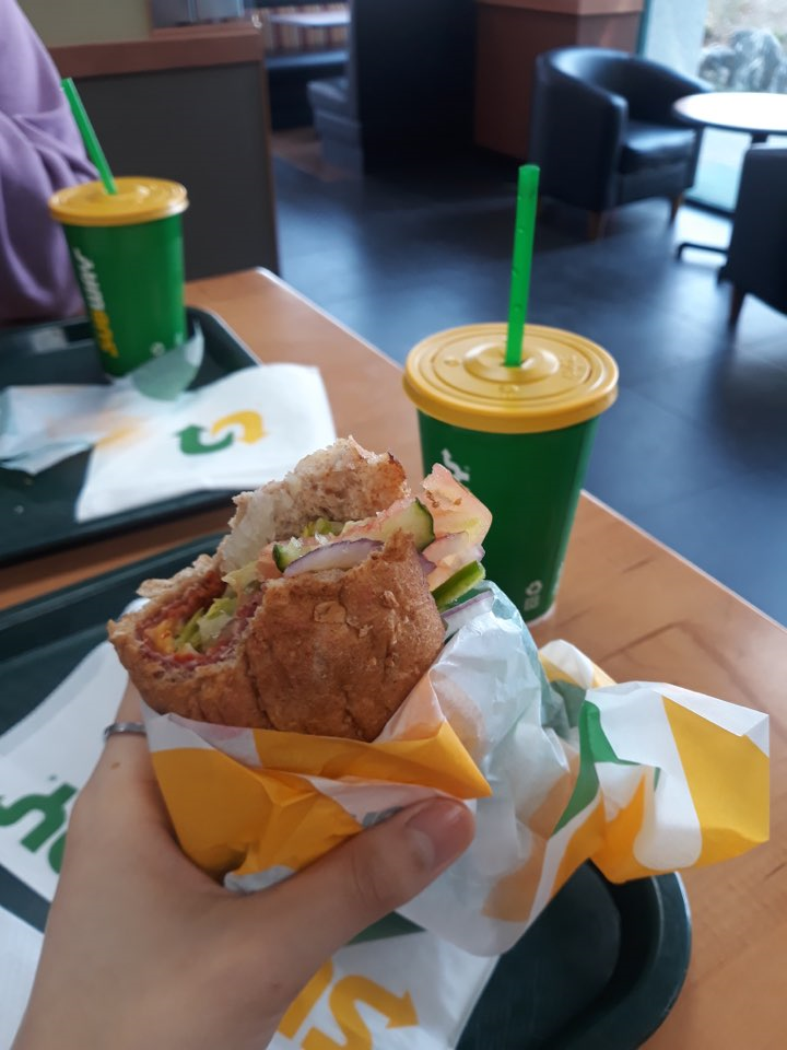 오랜만에 서브웨이 샌드위치를 먹었습니다. 평소에 혼자 있을 때, 안 사 먹고 거의 대부분 해 먹는 편이기 때문에 서브웨이는 일 년에 한두 번 갈까 말까 합니다. 근데 이 날따라 왠지 서브웨이가 너무 가고 싶더라고요. 할인 중인 이탈리안 비엠티 세트로 먹었습니다. 안 그렇게 생겨서 꽤나 배부르더라고요. 간단하게 한 끼 때울 때는 이만한 게 없다고 생각합니다.